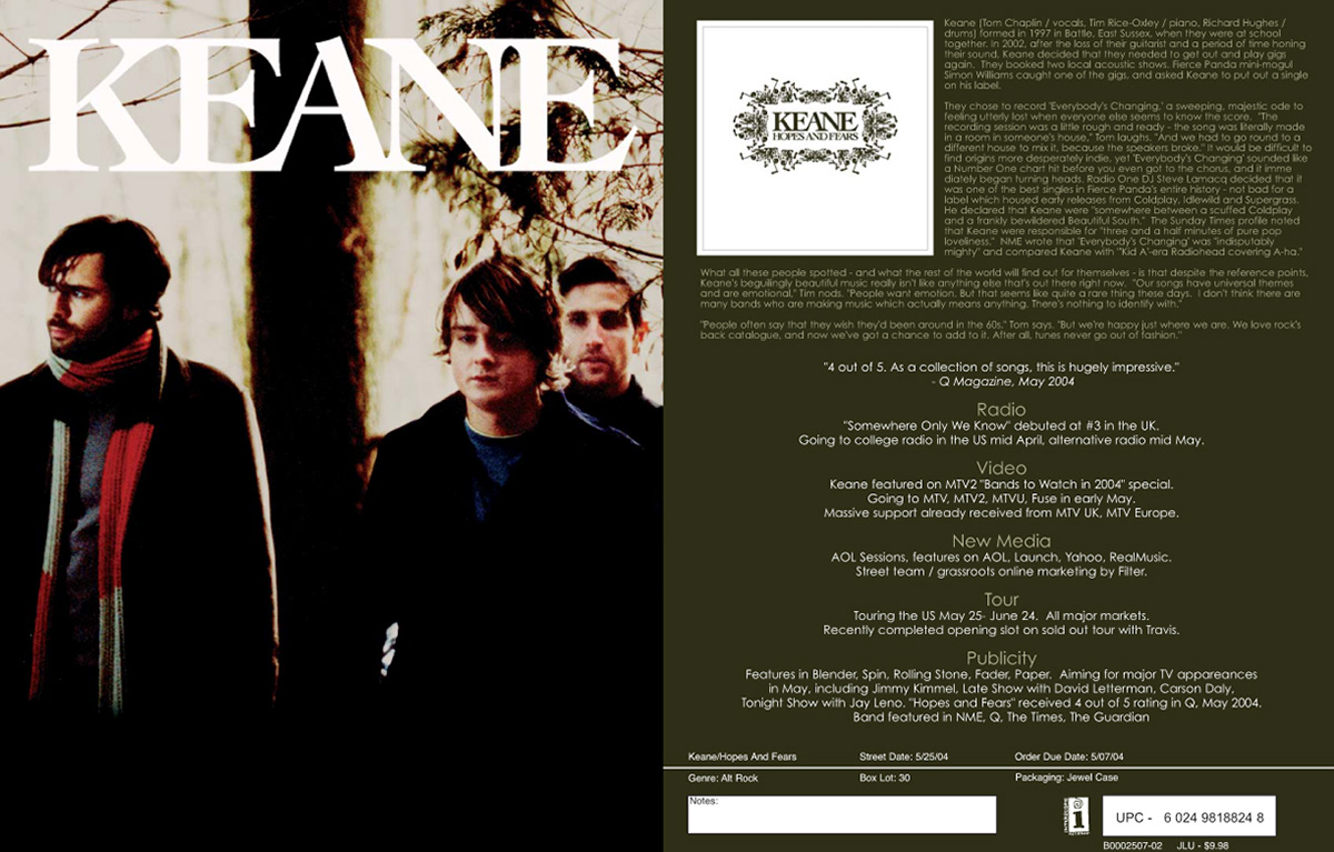 Keane - Album Art & Sellsheet